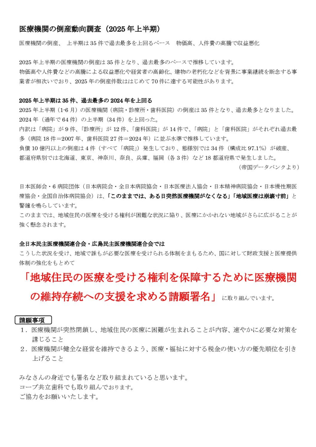 医療機関の倒産動向調査